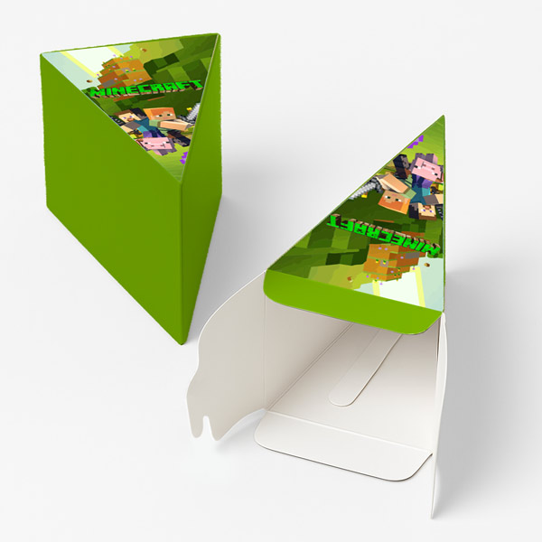 Χάρτινη τούρτα με θέμα Minecraft, με το όνομα του παιδιού & εντυπωσιακό design. Η χάρτινη τούρτα αποτελείται από 12 ξεχωριστά κομμάτια, τα οποία όταν συναρμολογηθούν σχηματίζουν έναν ολοκληρωμένο κύκλο – μια εντυπωσιακή παρουσίαση για κάθε είδους εκδήλωση. Κάθε κομμάτι είναι σχεδιασμένο σαν φέτα τούρτας και λειτουργεί ταυτόχρονα ως κουτάκι, ιδανικό για γλυκά ή μικρά δωράκια.