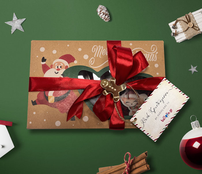 • Περιλαμβάνει: χριστουγεννιάτικο χάρτινο κουτί (22 x 15 cm) και 6 στολίδια ζωάκια & Άι Βασίλης (7 cm)