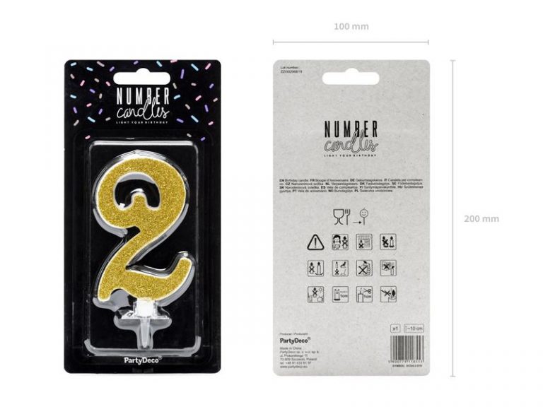 Κεράκι γενεθλίων με χρυσό γκλίτερ Αριθμός 2