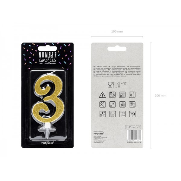 Κεράκι γενεθλίων με χρυσό γκλίτερ Αριθμός 3