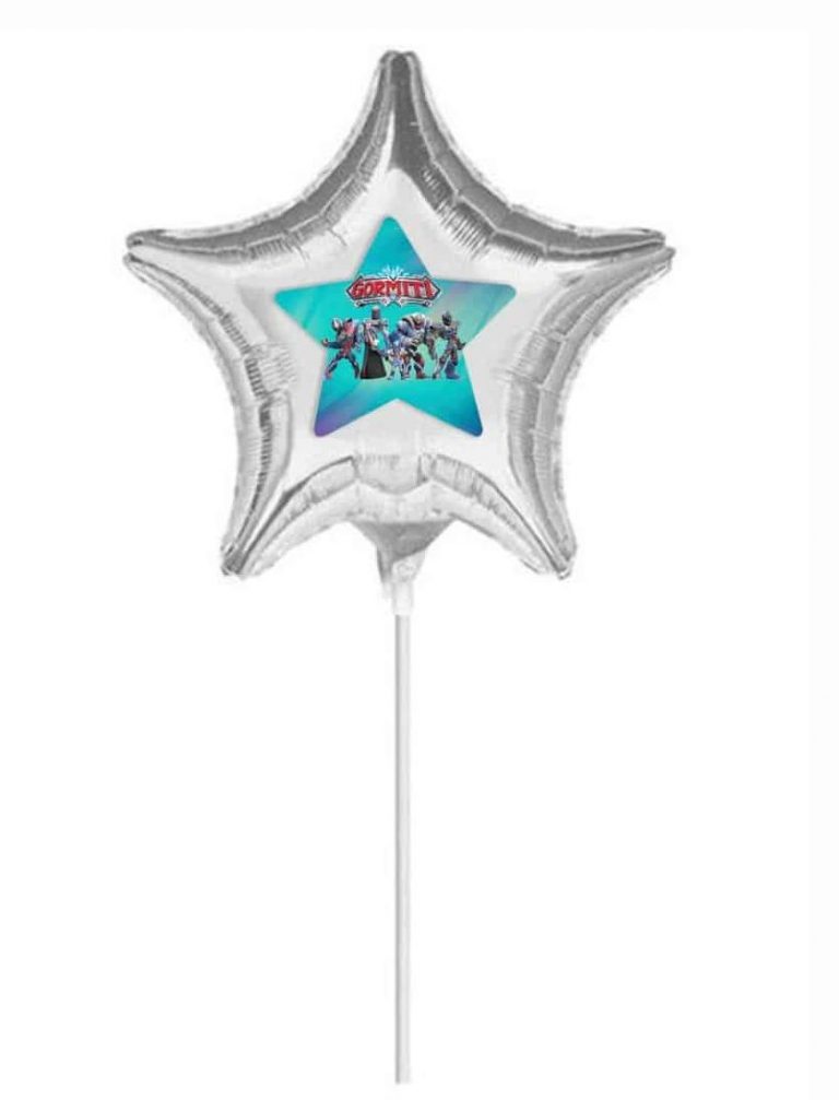 Ασημί μπαλόνι σε σχήμα αστεράκι με αυτοκόλλητο με τους μαχητές Gormiti! Μοιράστε τα στους μικρούς καλεσμένους του πάρτι!