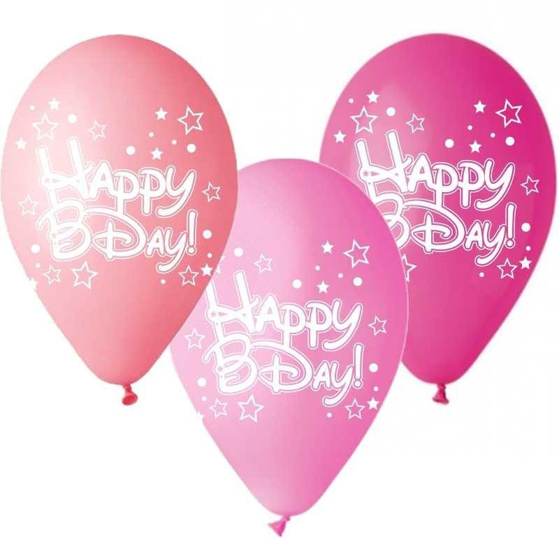 12″ Μπαλόνι Happy Bday αστεράκια ροζ αποχρώσεις (25 τεμ)