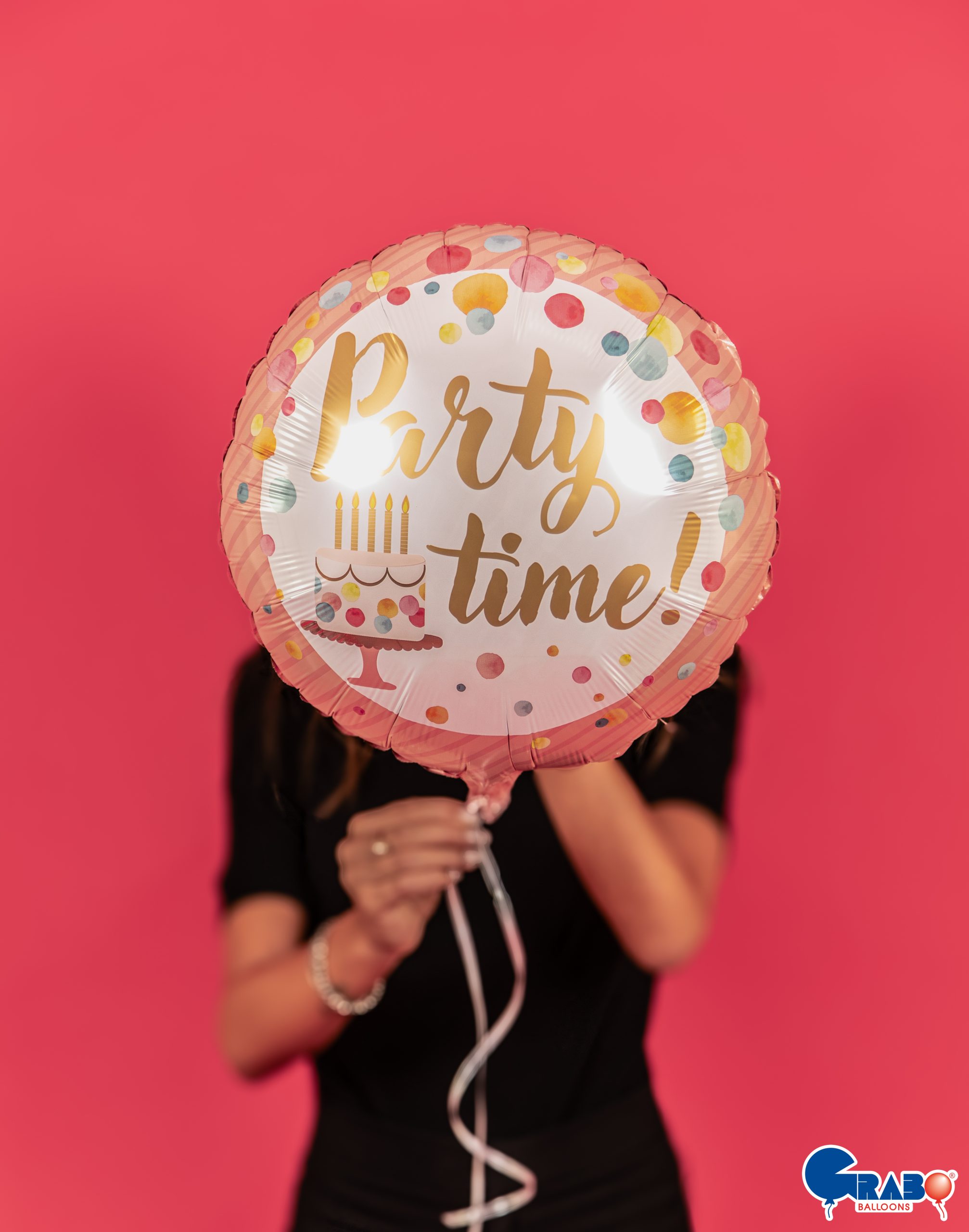Εντυπωσιακό, foil μπαλόνι γενεθλίων διπλή όψης για να στολίσεις όμορφα τον χώρο του πάρτυ! Στην μία πλευρά γράφει “Happy Birthday” και στην άλλη πλευρά γράφει “Party Time”!