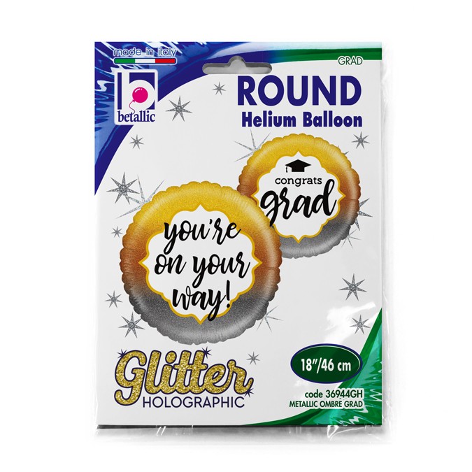 Μεταλλικό στρογγυλό foil μπαλόνι αποφοίτησης, σε ombre χρώματα και καλλιγραφικά γραμμένο “You ‘re on your way!”