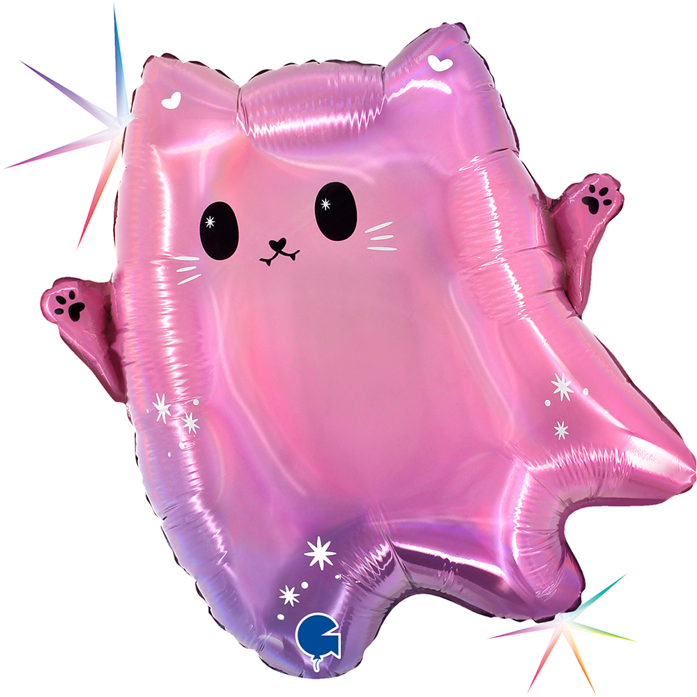 Μπαλόνι ροζ Holographic με σχέδιο γλυκό Φαντασματάκι Γατούλα για τη διακόσμηση του Halloween Πάρτυ!