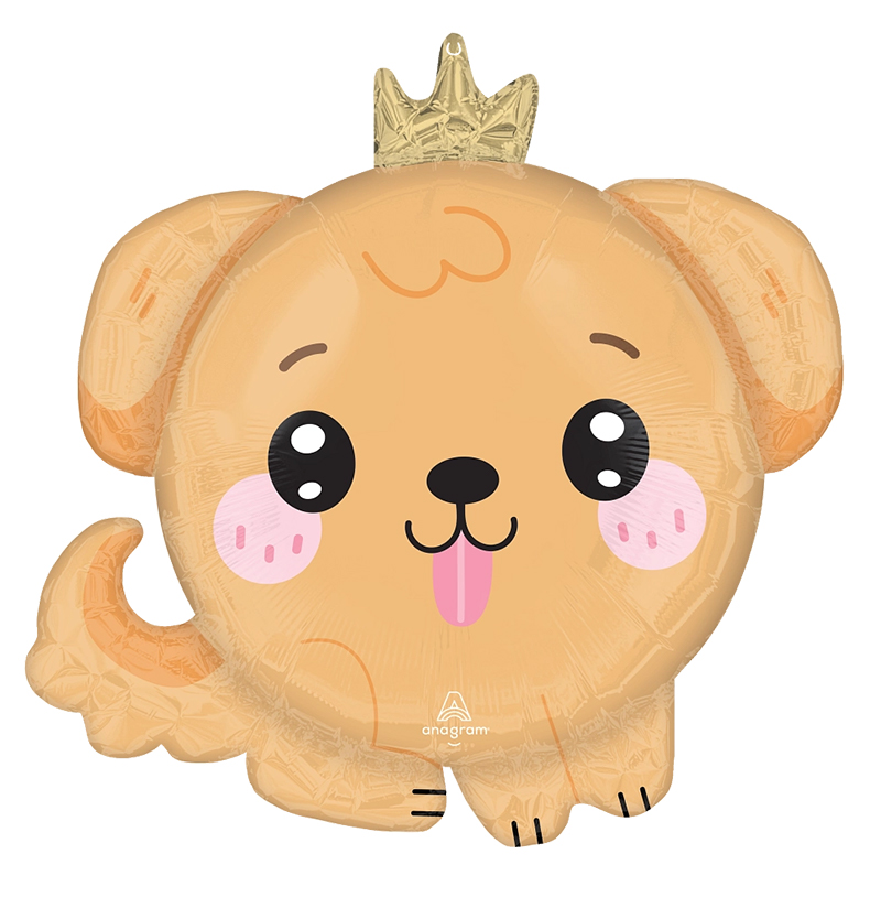Χαριτωμένο μπαλόνι σκυλάκι σε kawaii στυλ που φορά κορωνίτσα, ιδανικό για παιδικά πάρτι, baby shower ή ως γλυκό δώρο–έκπληξη.