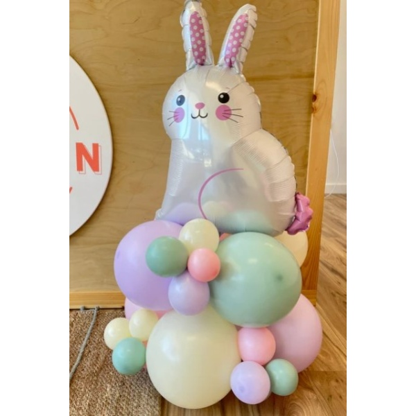Σατέν άσπρο μπαλόνι με σχέδιο Λαγουδάκι, για μια μοναδική πασχαλινή διακόσμηση ή για να δωρίσετε σε αγαπημένα σας πρόσωπα.