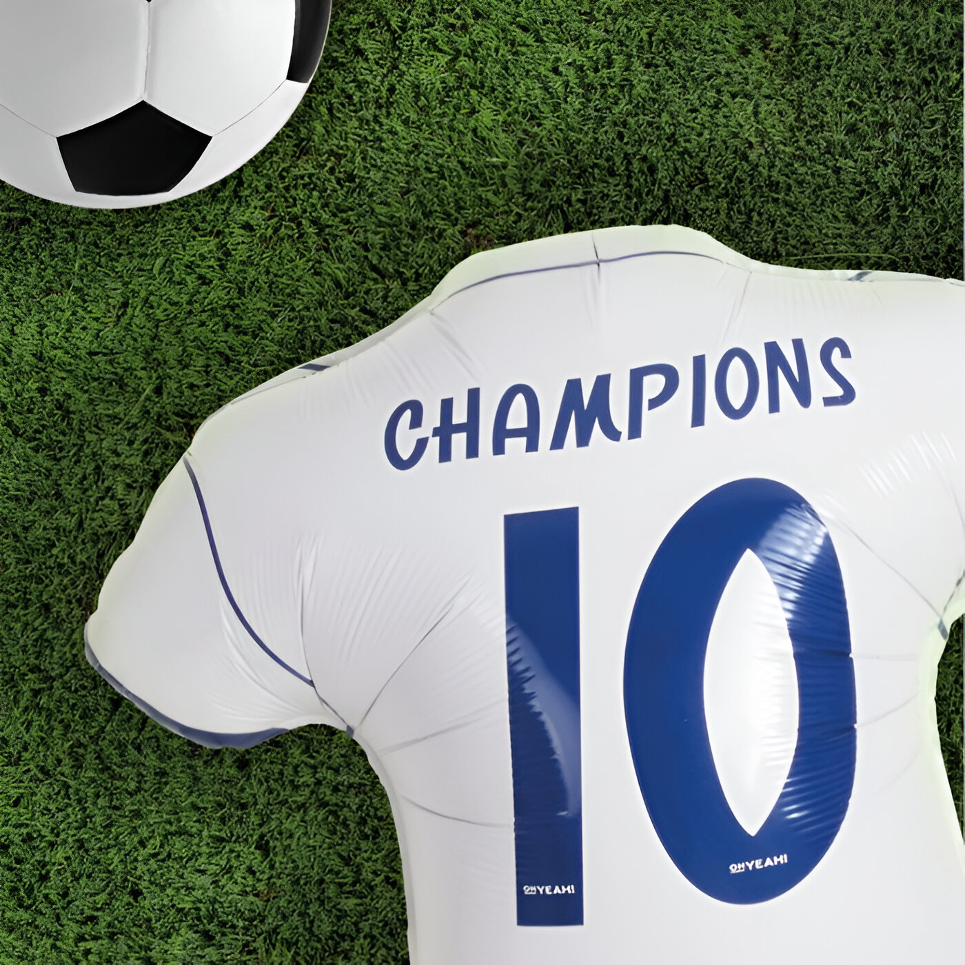 Μπαλόνι σε σχήμα ποδοσφαιρική λευκή μπλούζα για μια μοναδική διακόσμηση πάρτυ με θέμα το Ποδόσφαιρο!