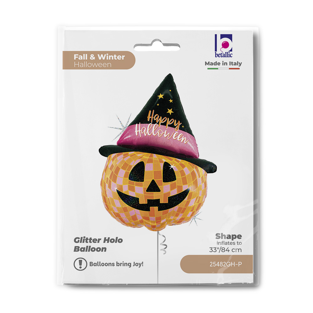 Δώστε λάμψη και στυλ στη φετινή Halloween διακόσμησή σας με το Disco Halloween ! Ένα εντυπωσιακό μπαλόνι με disco αισθητική και χαμογελαστή κολοκύθα που συνδυάζει το κλασικό Halloween με μια μοντέρνα εμφάνιση.