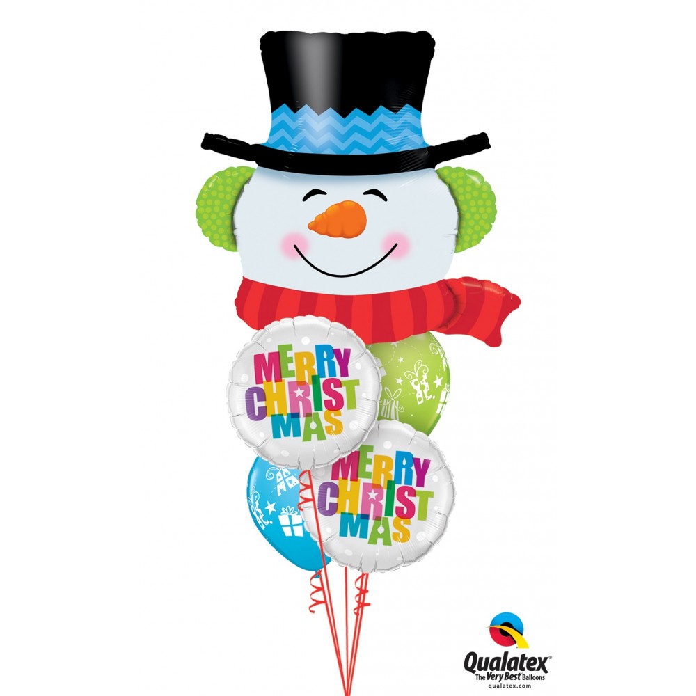 Φέρτε τη μαγεία του χειμώνα στο χώρο σας με αυτό το υπέροχο μπαλόνι χιονάνθρωπος με μεγάλο χαμόγελο, καρότο για μύτη, πράσινα αυτιά με γούνινες επενδύσεις, κόκκινο κασκόλ και εντυπωσιακό καπέλο με μπλε σχέδιο!