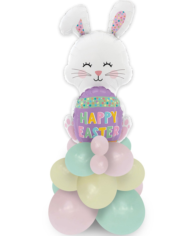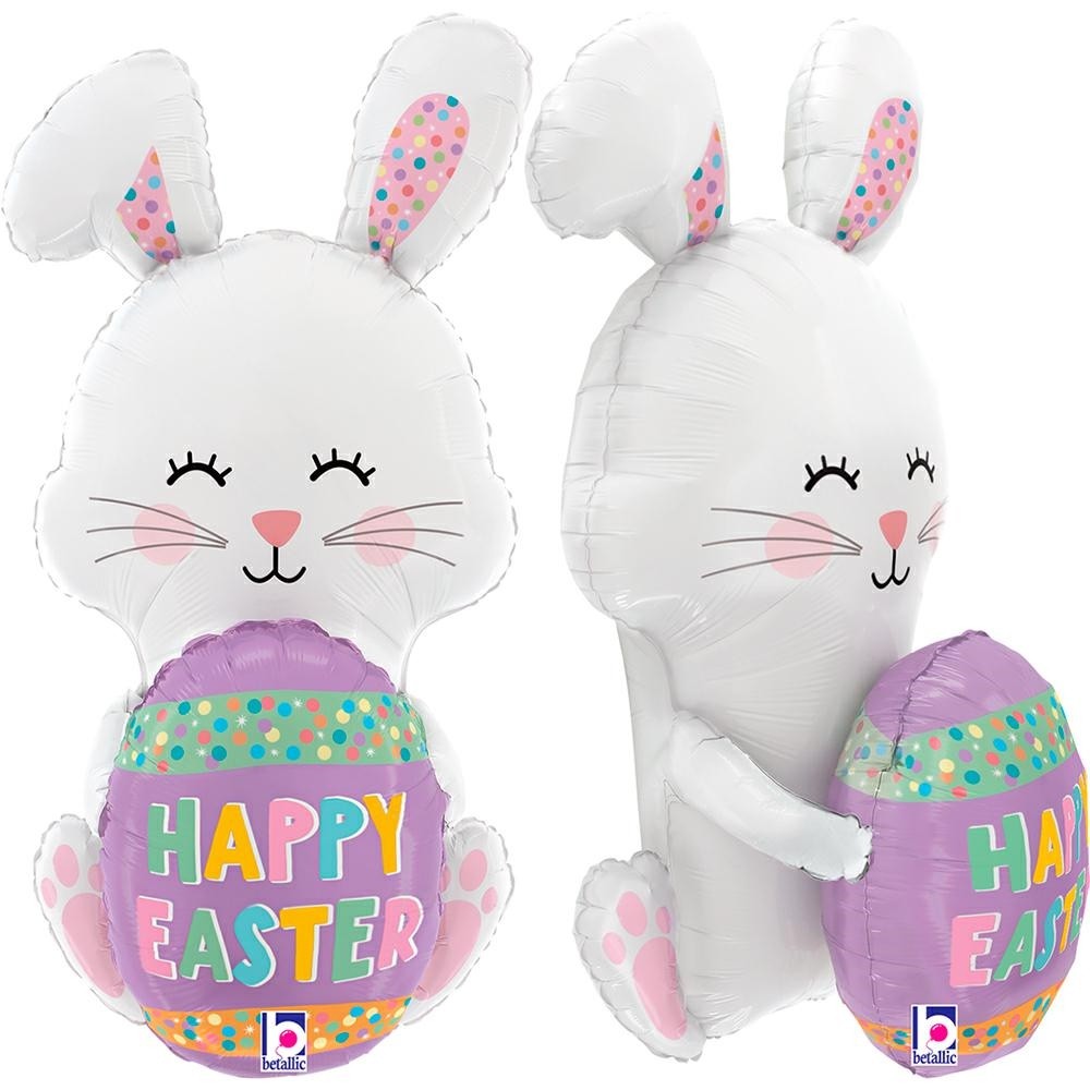 Χαριτωμένο μπαλόνι σε σχήμα κουνελάκι που κρατά πασχαλινό λιλά αυγό με την ευχή “Happy Easter”. Ιδανικό για πασχαλινή διακόσμηση ή ως ένα πρωτότυπο και ξεχωριστό δώρο.