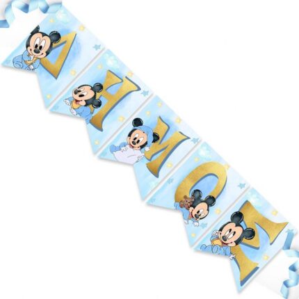 Μεγάλη διακοσμητική αφίσα με θέμα Baby Mickey 1st και εκτυπωμένη τη φωτογραφία του παιδιού, για να υποδεχθείς τους καλεσμένους σου στο πάρτυ γενεθλίων ή για να διακοσμήσεις το δωμάτιό του!