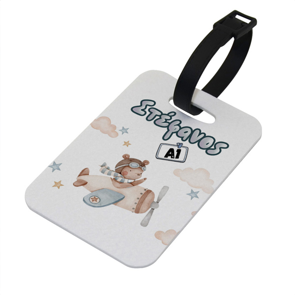 Bag Tag με θέμα Αεροπλάνο Αρκουδάκι, ιδανικό για σχολικές τσάντες, βαλίτσες ή σακίδια. Το Bag Tag βοηθά στον εύκολο εντοπισμό και δίνει στυλ με αγαπημένα σχέδια.