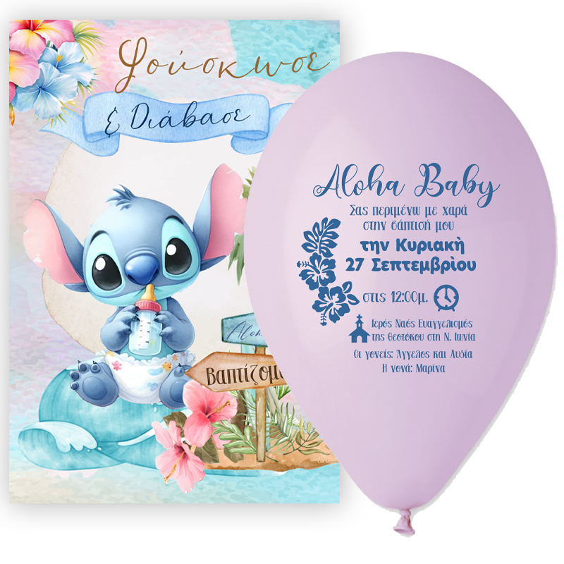 • Προσκλητήριο Βάπτισης μπαλόνι - Stitch 2,10 €