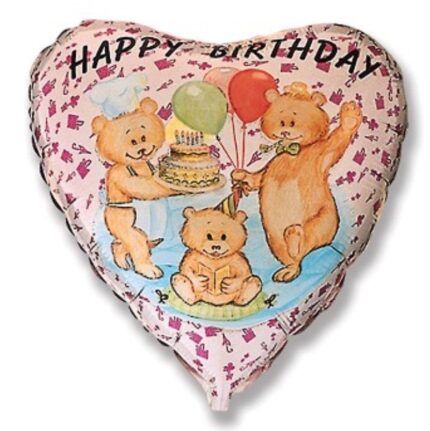 Μπαλόνι Φοιλ 18 Καρδιά Ροζ Happy Birthday με Αρκουδάκια / 46 εκ